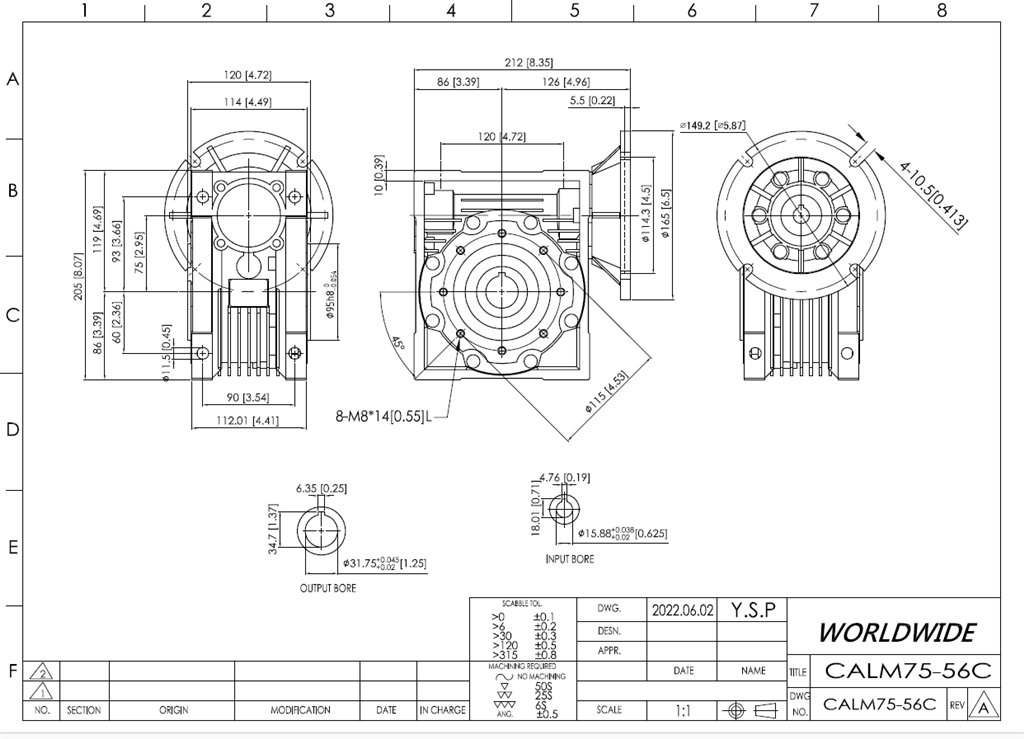 Output shaft? CALM75-60/1-56C, Aluminum Worm Gear Reducer, Box Size 75, 60:1 Ratio, 56C Frame