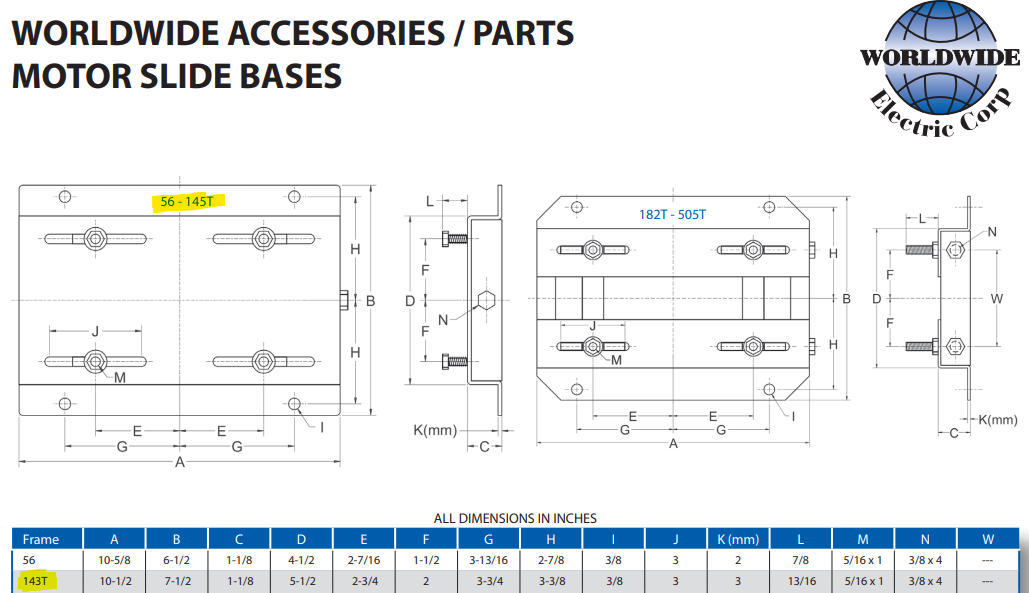 View all W143T, Motor Slide Base, 143T Frame Questions & Answers