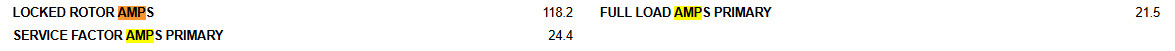 Amperage? EB384, 5HP, 3450 RPM, 230V, 56HZ, ODP, 1ph, T063CJW2054013B, IR mdl# 23378805